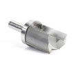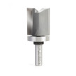 This bit is essentially a plunge-cutting straight with a shank-mounted ball-bearing pilot. Versatile, useful for template/pattern routing of parts, joints, internal cuts and can be used in handheld and table-mounted routers. The template is attached to the workpiece, and the pilot bearing rides along its edge as the cutting edges rout the workpiece, forming an exact duplicate of the template. With a handheld router, the pattern is on top of the work; with a table-mounted router, the pattern is underneath the work.