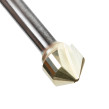 The carbide cutting tip is brazed to a steel shank specially designed to cut grooves in composite building materials. Routing V-shaped grooves, whereby the aluminum cover and a part of the polyethylene core is removed, allows folding/creasing the remaining material by hand. Special Amana-grade carbide provides much longer tool life especially compared to carbide tipped tooling.