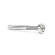 Stage flush trimming cuts, whether in laminate work or template work, with this bit. Trimming the material in two passes reduces chipping in laminates and tearout in solid wood. A preliminary cut with the overhang bit leaves a small overhang in laminate work or, template work, leaves an edge slightly proud of the template.