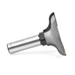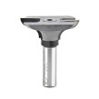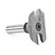 This unique door-making system utilizes a “stub” spindle & cope cutter arrangement. The counterbored cope cutter is secured to the spindle with a cap screw. A matching profile bit is used to shape the decorative ogee “sticking” along the edges of the stiles and rails. As the cope is cut on the ends of the rails, the tenon passes over the top of the bit unobstructed.