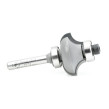 Cut rule joints with a single bit carrying perfectly matched profiles. Switch from the cove to the quarter-round simply by changing the extension of the bit. Use in handheld or table-mounted routers.