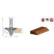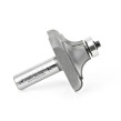 This bit cuts a small cove combined with a larger thumbnail. Works well when combined with a molding under the top.