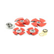 Four piece cutterhead set for producing two types of stile and rail and two types of raised panel profile in softwood, hardwood and man-made boards. Cutterheads have three or four tungsten carbide tips. Set comes complete with necessary ball bearing guides.