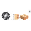 This stackable finger-jointing tool is an open-design cutter with no limitation on chip size. As such, it’s a high-production, high-performance tool to be used only with an automatic or power feed. The tool features a 3-wing solid-steel cutterhead that takes replaceable carbide knives. Each cutter will cut up to 40mm high and 10mm deep. Stack two or more cutterheads on the spindle to increase the cut height capacity.