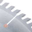 While this blade handles general trimming and crosscutting of hardwood and softwood, plywood and composition materials, it excels at cutting single or double-sided plastic-laminated material. It leaves a smooth, clean, chip-free finish on the top and bottom edges. The blades in this series feature a high tooth count, the triple-chip grind and a 10° hook angle for a successful compromise between feed effort and cut finish.