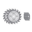 For plywood and melamine, the sets with 46-tooth outside blades are recommended.