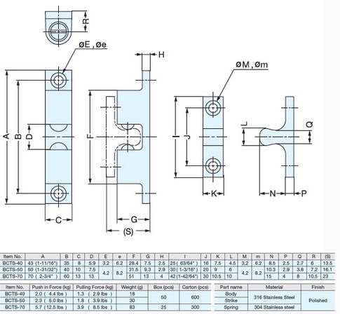 BCTS-70, STAINLESS STEEL TENSION CATCH