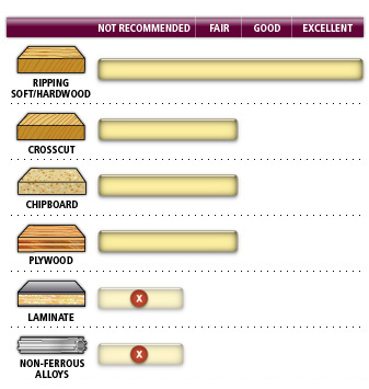 This special glue line blade shears the wood cleanly so there is no need to joint the stock prior to gluing. The precision triple-chip grind & extra-high hook angle allow aggressive feed rates, yet produce an extra-smooth cut finish. The thick plate and laser cut expansion slots minimize vibration. Use on table saws, sliding table saw, single and gang-rip operations.