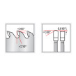 This unique hollow-ground design produces crisp, clean cuts in melamine and other coated boards without the need for scoring. The blade pairs triple-chip teeth along with raker teeth and a positive hook. It is particularly suitable for use on horizontal sliding table saws such as those made by Striebig®, Altendorf®, SCM® and Holz-Her®.