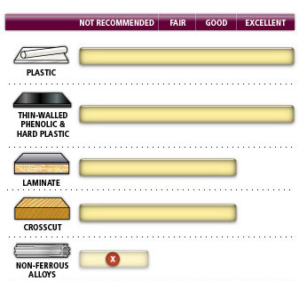 • Cuts clean, no-melt, chip-free cuts in PVC, acrylics and other plastic materials.