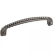 5-3/4" Overall Length Zinc Cabinet Pull with Rope Detail. Holes are 128mm center-to-center. Packaged with two 8/32" x 1" screws. Finish: Brushed Pewter.