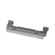 5-13/16" Overall Length Rustic Cabinet Pull. Holes are 128mm center-to-center. Packaged with two 8-32 x 1" screws. Finish: Distressed Antique Silver